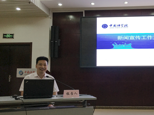 会议由刘峰松主持。院科学传播局新闻联络处处长熊德首先受邀介绍我院近几年来新闻宣传工作取得的一系列进展,并结合一些大型宣传案例对重点宣传项目的组织策划进行指导。在院党组的高度关注和国家宣传主管部门的大力支持下,我院近年来新闻宣传工作成绩喜人,宣传活动的数量和质量每年都迈上新的台阶,为更好地维护我院公众形象,在全社会营造更强地科技创新舆论氛围作出贡献。他结合综艺节目“机智过人”等成功案例,对我院主动策划高层次宣传活动,与中央和地方重要媒体开展战略合作而打造的一系列符合我院特色的品牌活动进行了详细介绍。
