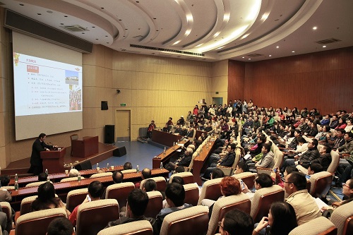 10月31日上午,由中科院北京分院协作三片主办、数学院承办的学习贯彻党的十九大精神报告会隆重召开。数学院十九大代表袁亚湘院士做了题为“不忘初心、方得始终”的宣讲报告。来自协作三片的党委书记、纪委书记、党办主任,数学院全体党员、中层以上干部、科研人员、党外人士200余人参加了报告会。党委副书记武艰主持了报告会,杨乐、严加安、陆汝钤、苏肇冰、张肇西、欧阳钟灿等院士参加了会议。思源楼报告厅人头攒动、座无虚席、过道上站满了听众。