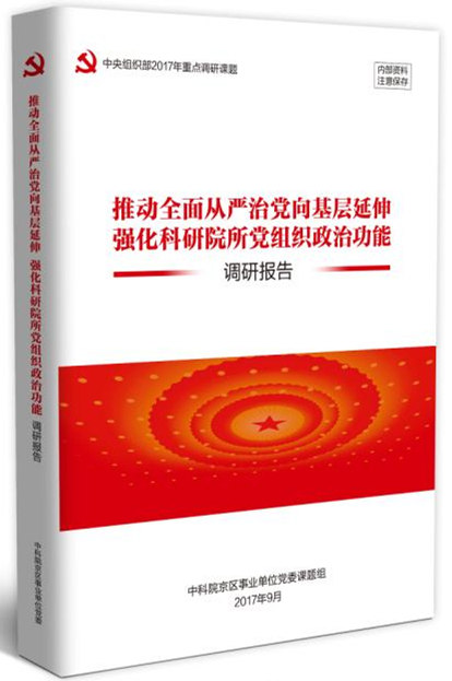 日前,全国党的建设研究会表彰了2017年度调研课题优秀成果,由中国科学院京区事业单位党委牵头完成的《推动全面从严治党向基层延伸 强化科研院所党组织政治功能研究》获得2017年度调研课题二等奖。
