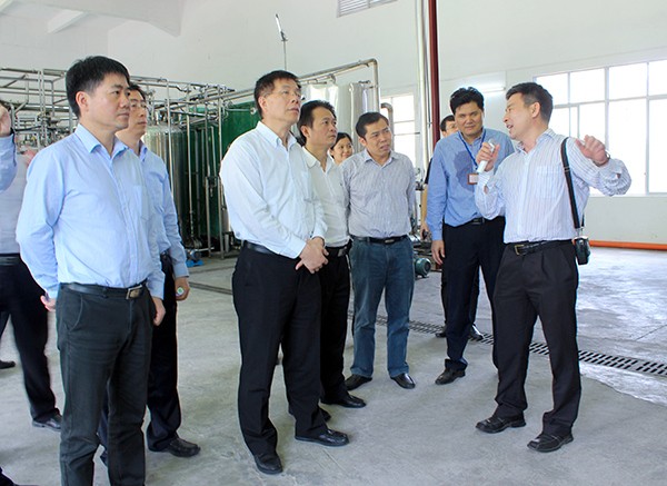 万印华研究员向邓麦村一行介绍膜法绿色制糖项目运行情况