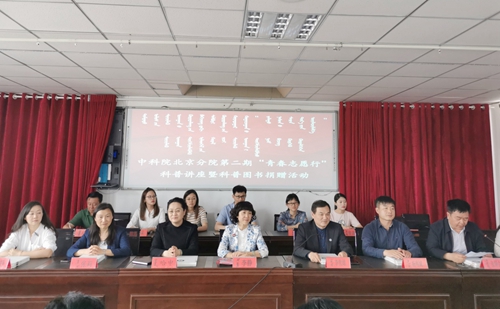 北京分院“春雨计划”专家报告暨第二期库伦旗妇女素质提升培训班邀请了心理所应用研究部主任、心理学博士张莉作《幸福家庭“心”建设》专题报告,为当地各行业近150名女性代表讲授女性在家庭生活中的角色,以及如何教育好孩子,处理好家庭关系等内容,获得强烈反响。同时,北京分院第二期“青春志愿行”科普讲座在库伦旗第一中学开讲。古脊椎所副研究员卢静从生物进化论角度,深入浅出地讲授了《鱼儿如何爬上陆地》、微生物所科普志愿者王天威结合近年在库伦旗当地从事青贮饲料扶贫项目的体会,做了《我们身边的微生物》精彩报告。讲座开始前还举行了科普图书和院士语录书签的捐赠活动。微生物所党委书记、副所长李俊雄,通辽市妇联主席包兰芳,库伦旗副旗长哈申、张铜会等出席活动。