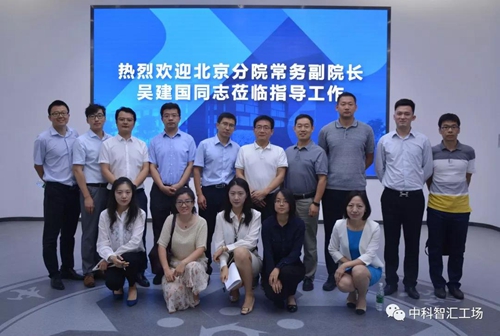 2019年8月26日,中国科学院北京分院分党组成员、常务副院长吴建国一行赴中科智汇工场,实地调研智汇工场整体建设运营情况。