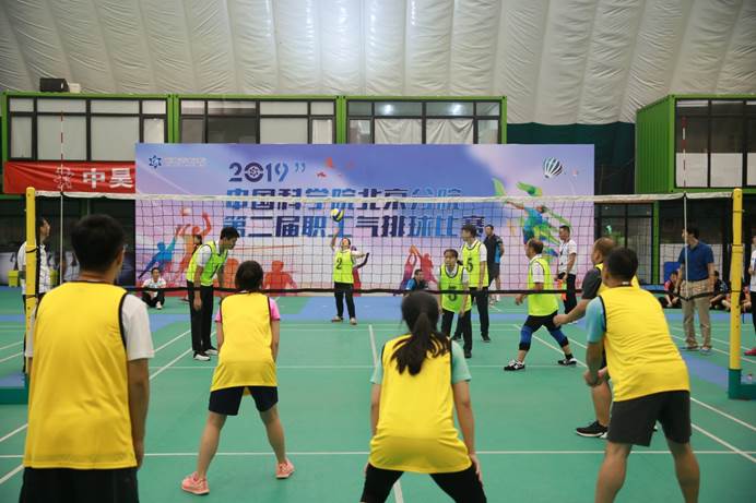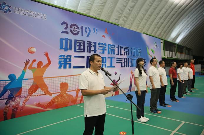 为热烈庆祝中华人民共和国成立70周年和中国科学院建院70周年,深入贯彻落实全民健身国家战略和《健康中国行动》,着力打造北京分院职工体育新品牌,引导广大职工积极参与体育健身,进一步推动北京分院职工体育工作蓬勃发展,北京分院第二届职工气排球比赛于925-26日在京举行,来自北京分院25家单位和特邀单位国科大的共计26支代表队的近300名运动员参加比赛。北京分院分党组书记、京区事业单位党委书记马扬出席开幕式并宣布比赛开幕。北京分院副院长、体协主席李静致辞,院直属机关党委群工部部长、院体协秘书长王宇星,北京分院体协汪洪岩、张福宽、何林、韩华4位副主席出席开幕式。开幕式由北京分院体协常务副主席徐治国主持。