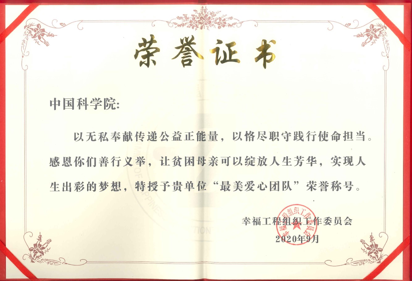 中科院荣获幸福工程全国组织工作委员会“最美爱心团队”荣誉称号